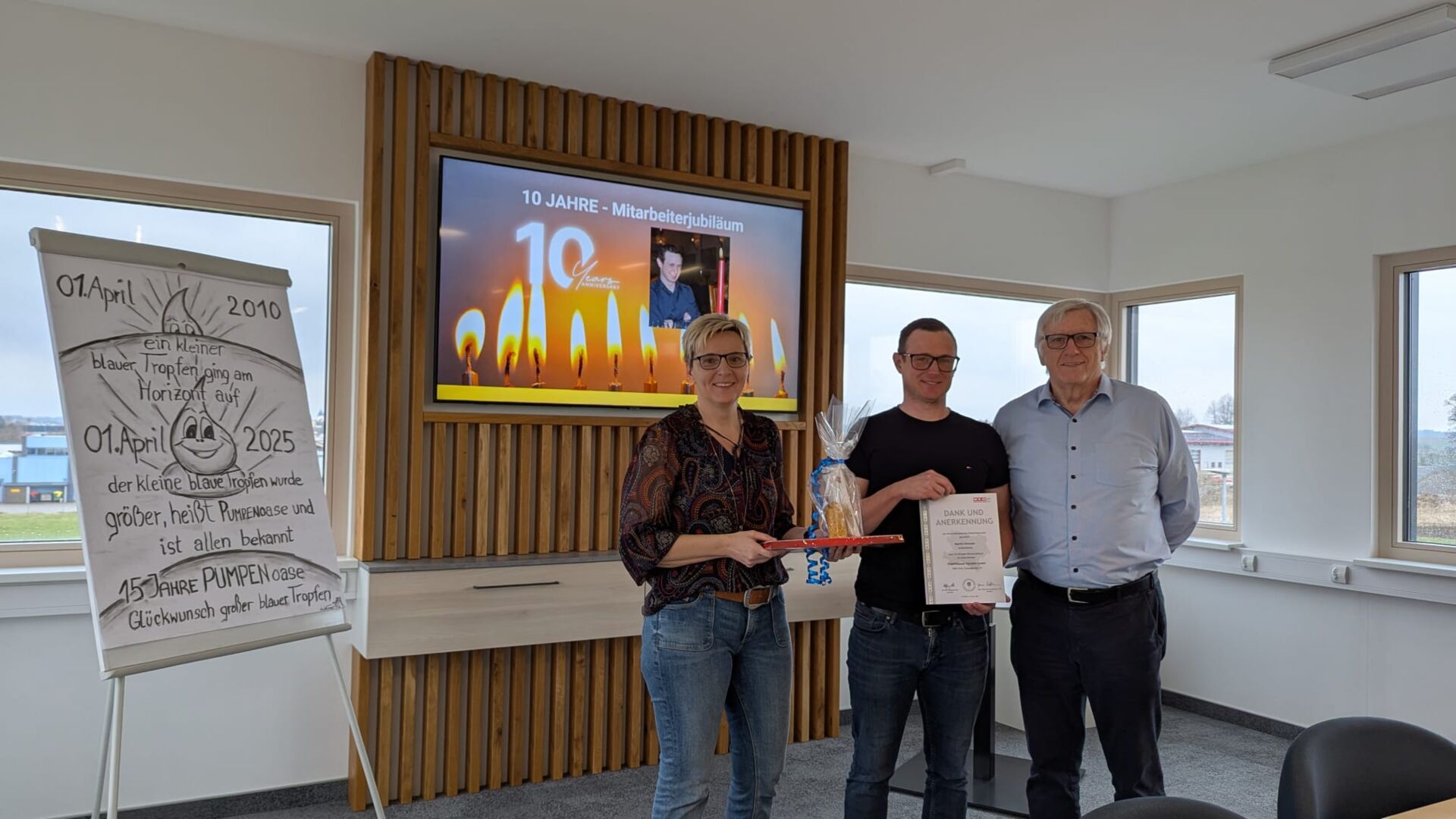 Wir feiern 15 Jahre Firmengeschichte und gleichzeitig ein besonderes persönliches Jubiläum: 10 Jahre engagierte Mitarbeit von Martin (Außendienst) - herzlichen Glückwunsch! Gemeinsam blicken wir stolz auf viele Erfolge zurück und sagen Danke für die Treue, den Einsatz und den Teamgeist. Auf viele weitere gemeinsame Jahre.
